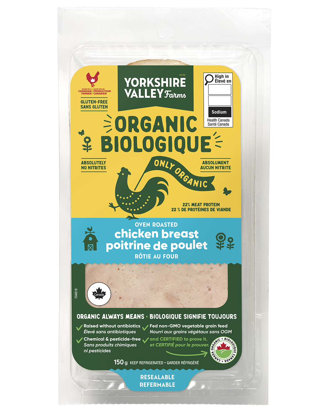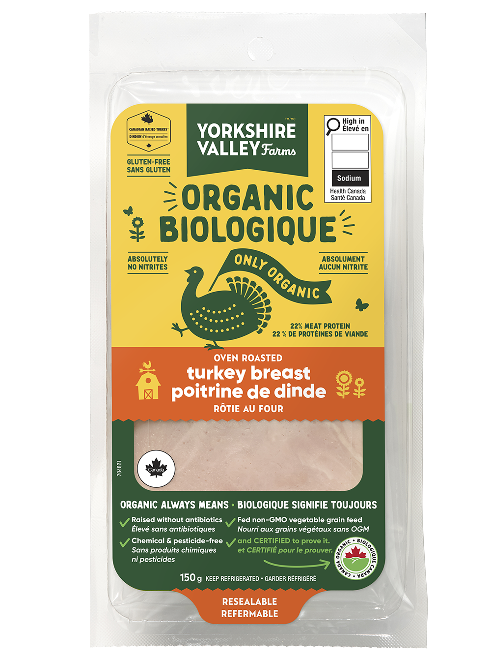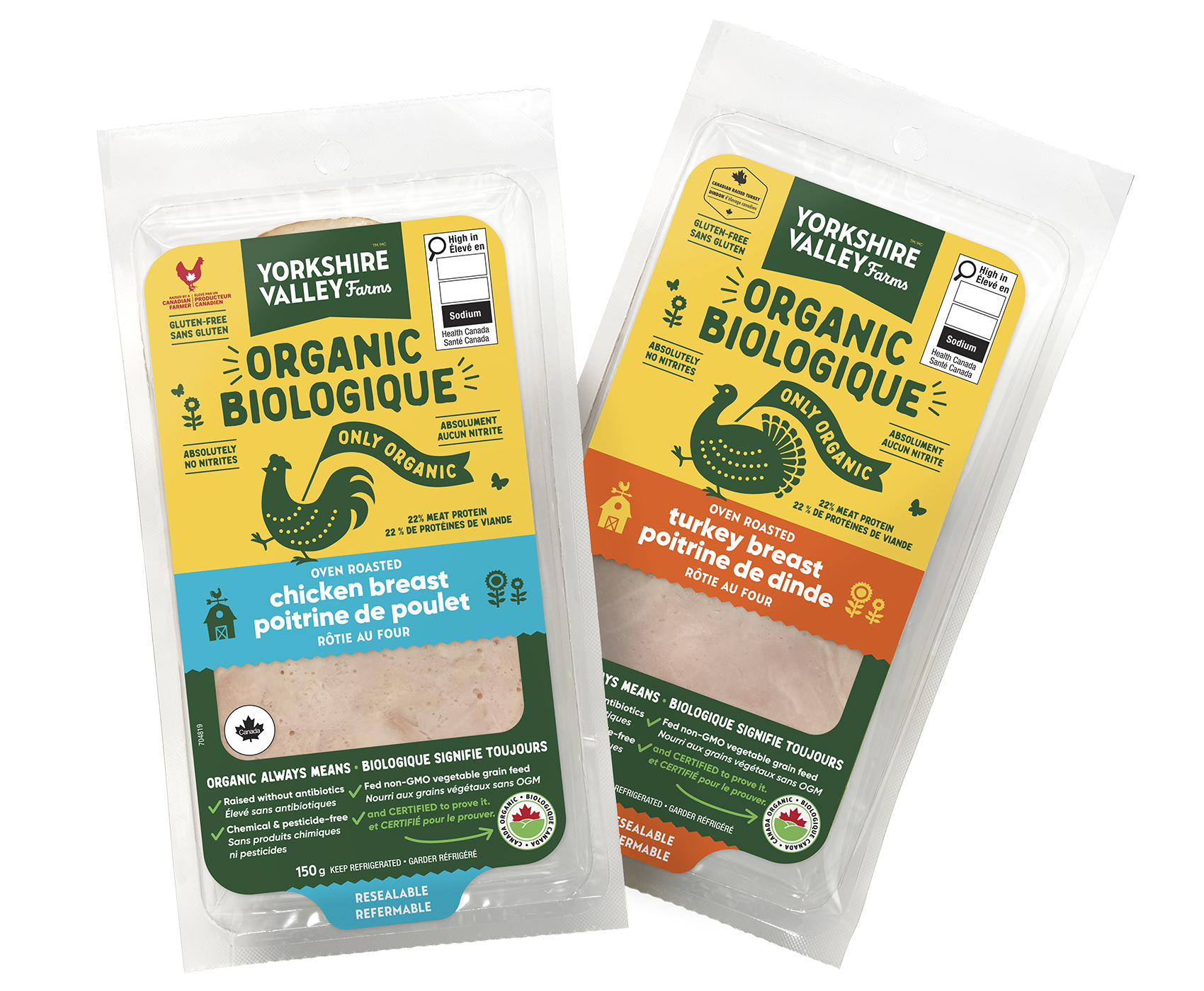 Our deli slices are made with our organic chicken or turkey breast, which means that like all of our poultry products, the animals have been raised without antibiotics on a non-GMO all grain diet.